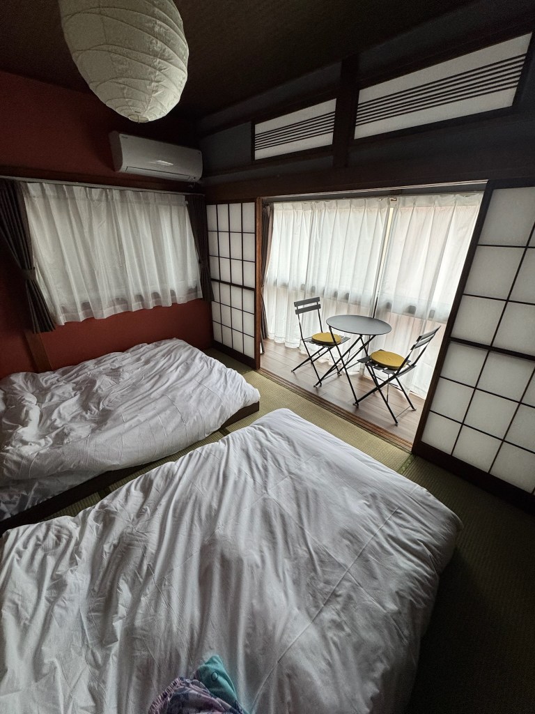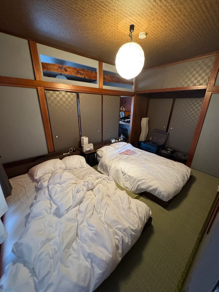 While they were out hunting breakfast, I had tackled the shower — which turned out to be an adventure of its own. Japanese bathrooms are… efficient. Ours was essentially a shower/tub combo in a space barely larger than a closet. The tub was tall and narrow, and the whole room is meant to get wet. The toilet, interestingly, was in a completely separate room, equipped with a sink attached right to the back of the toilet tank. A marvel of compact design. It’s genius really…why not use the water you wash your hands with to fill your toilet tank up?