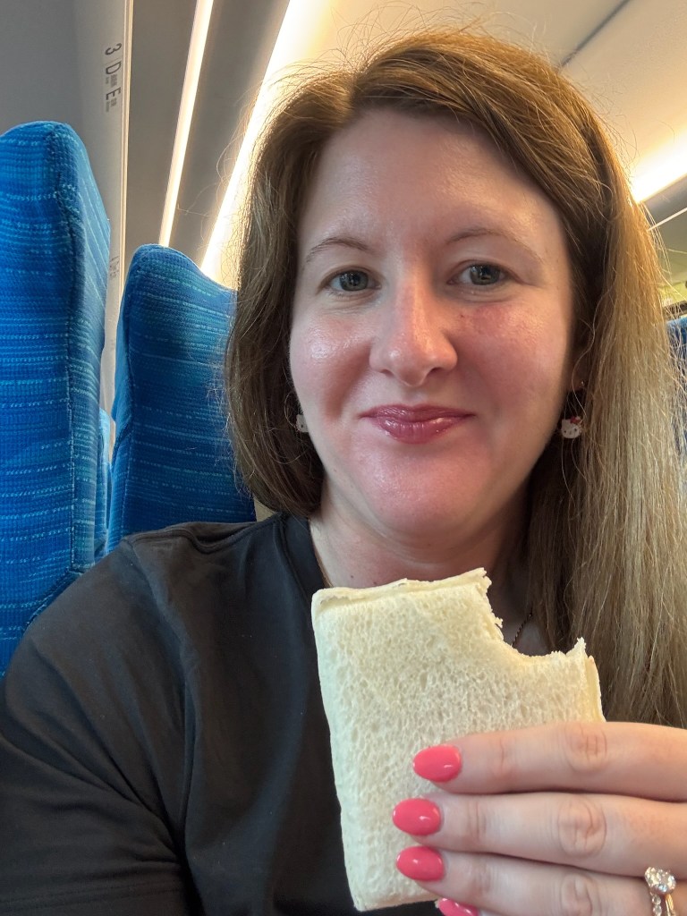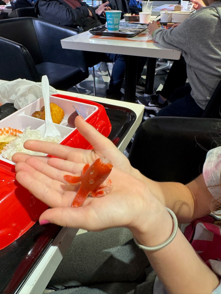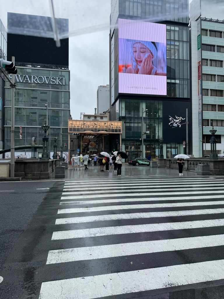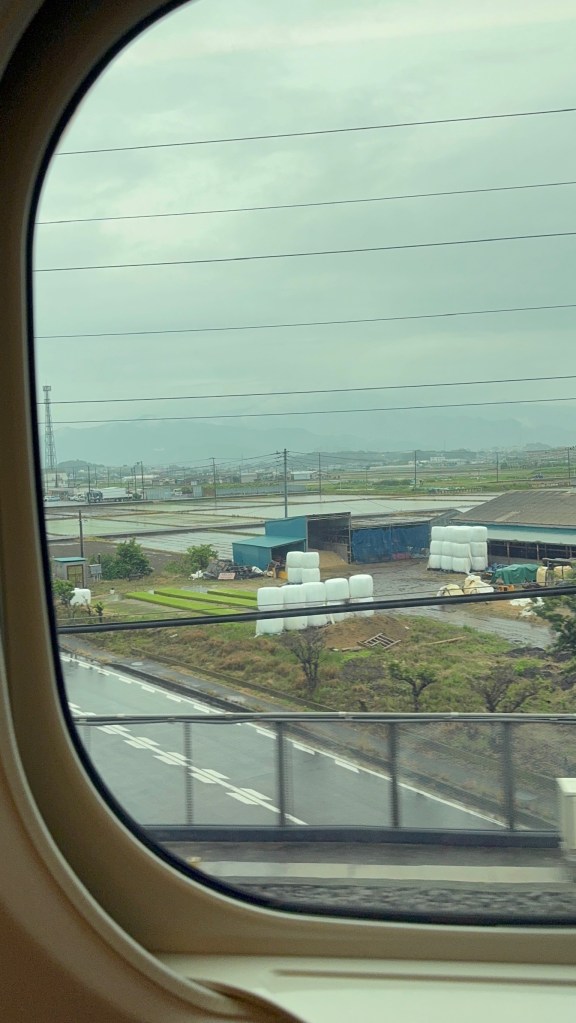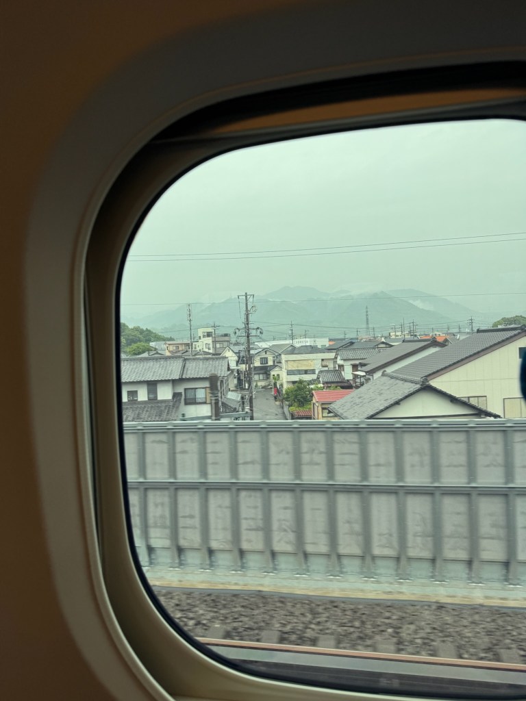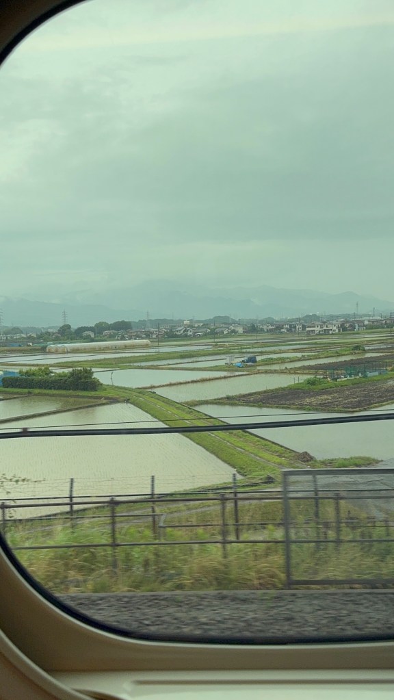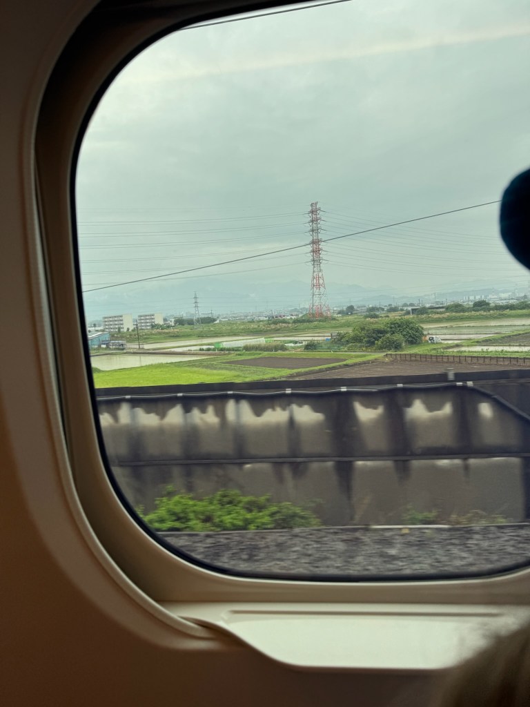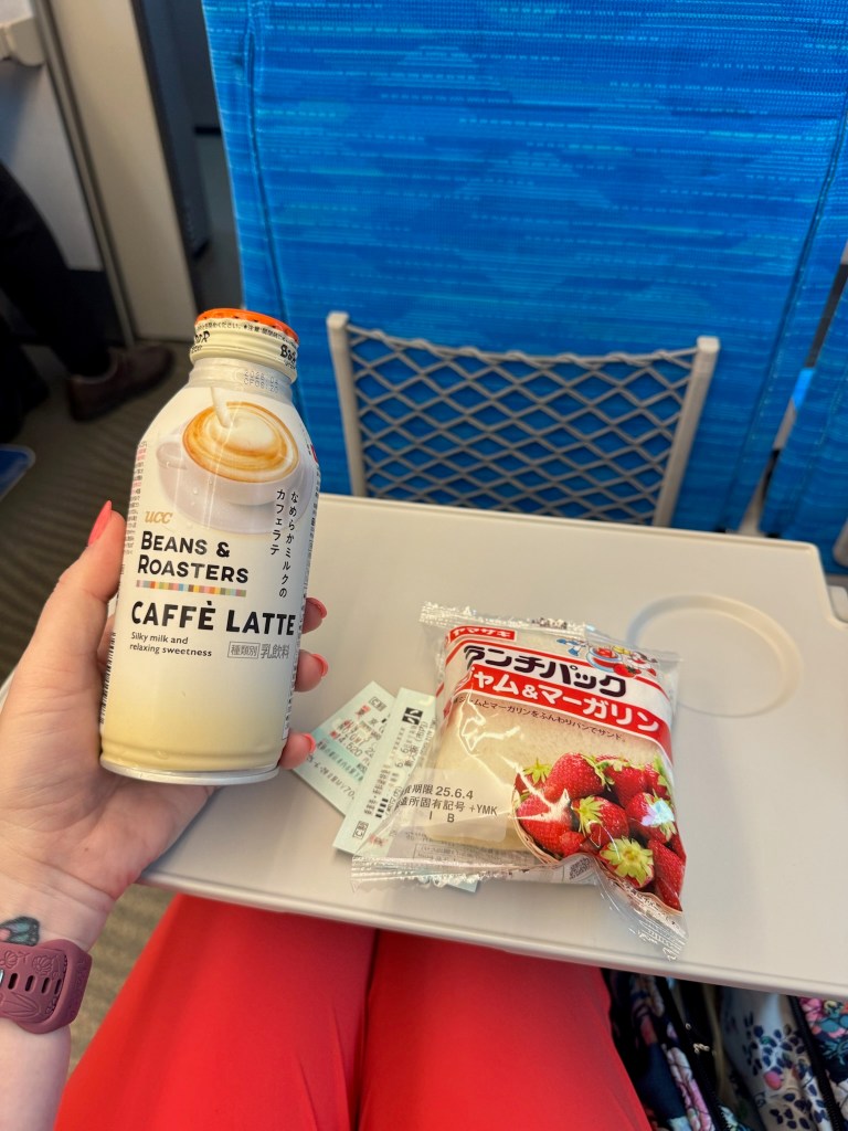 Even with rain and fog, the views from the Shinkansen were beautiful. For breakfast, Carlynn and I each had Japan’s version of an uncrustable — soft, fresh bread with incredible jam in the center. It was way better than the frozen ones at home. I’m convinced everything here just tastes better and fresher.
