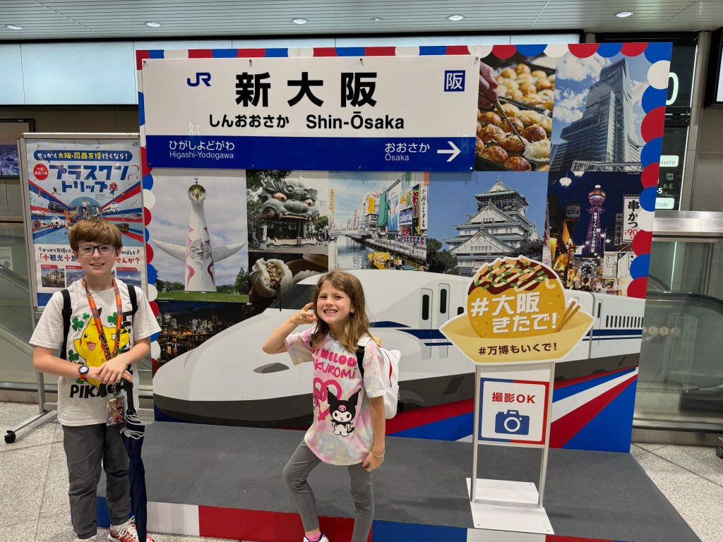 Let me just say: the bullet train is awesome. It’s more spacious than coach airplane seats, with amazing legroom and even free Wi-Fi. I’m typing this part on the train now! The ride to Osaka has only a few stops. At the first one, a couple got on with four huge suitcases and massive backpacks — and the guy kept smacking people (including me) with a duffel bag tied to his back. Tom thought we had a lot of luggage… I will remind him of this every time we travel and he complains about how much I pack…It could always be worse!