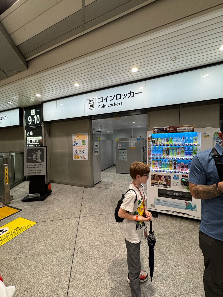 After arriving in Osaka, we scoped out which train we’d take later to our hotel so we could store our bags close by. Bag lockers here are genius — for 700 yen, we stored our carry-on suitcase and two large backpacks. Super easy and secure. We even spotted the same group of European men from our train at the lockers — small world!