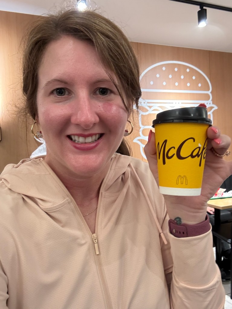 Later, we stopped at a McDonald’s to use the restroom and grabbed drinks. The kids had melon Fanta floats (of course), and Tom and I had coffee. I got the smallest size, and it was teeny and adorable. Also, noticeably less sweet than U.S. McDonald’s coffee.
