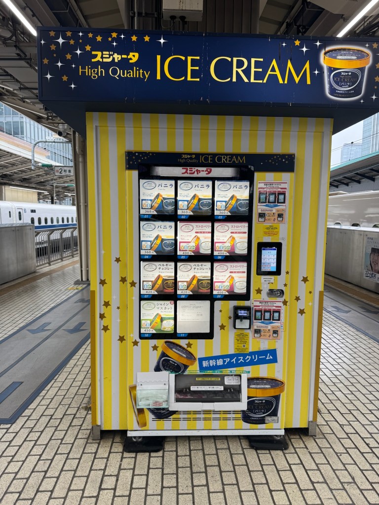 We arrived at Tokyo Station about 30 minutes earlier than we had the day before — right in the middle of rush hour. Still, we made it! Tom and the kids ran into the convenience store to grab snacks and drinks while I waited outside with the luggage. Then we made our way to the Shinkansen platform and only had to wait about 10 minutes before boarding. Tom drank a little protein drink while we waited.