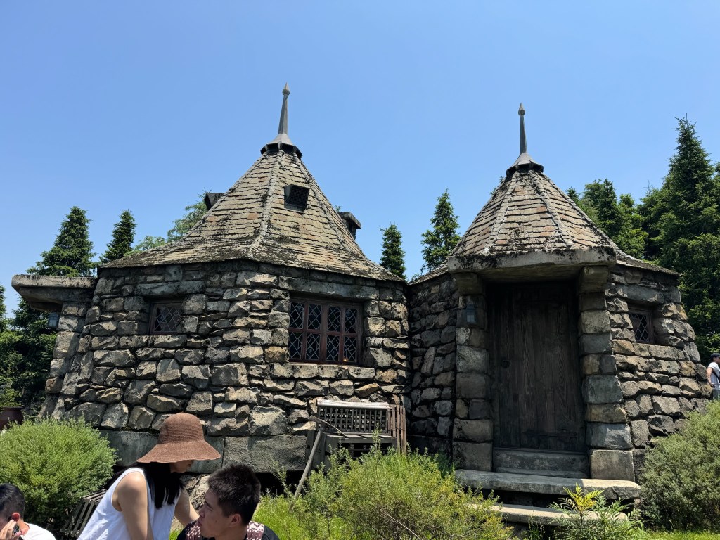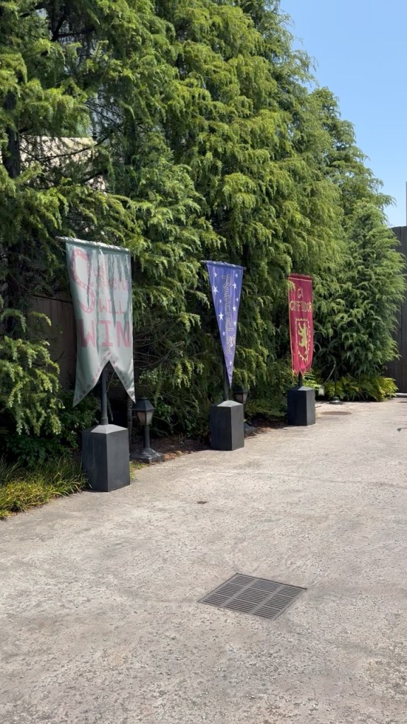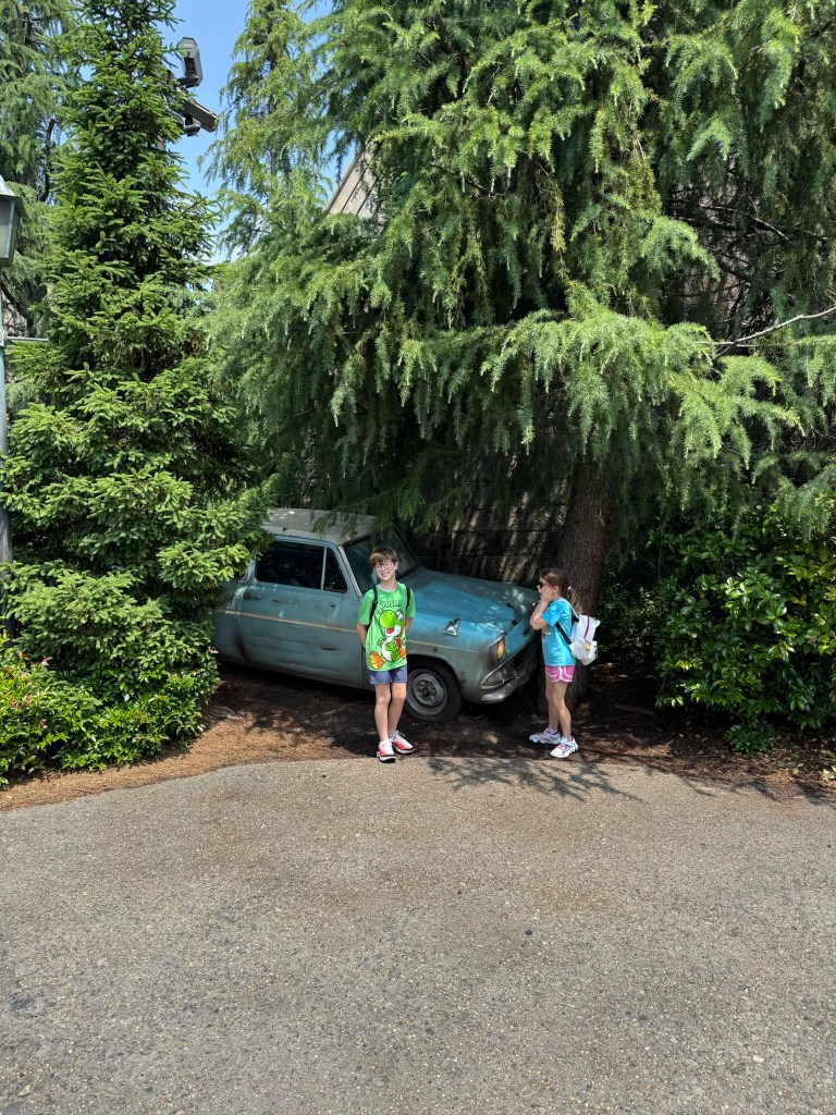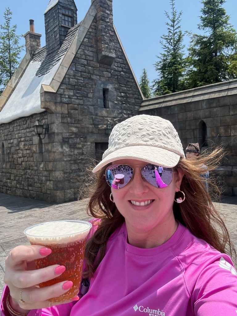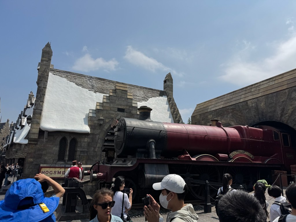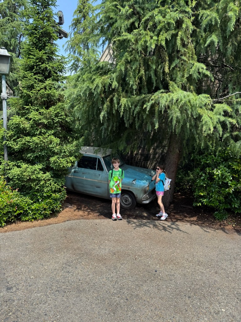 Next up: The Wizarding World of Harry Potter! We had a timed entry pass and couldn’t wait to step into Hogsmeade. It felt like we walked into the movies. Charlie bought a wand and practiced interactive spells while Tom grabbed us two Butterbeers (delicious!). He struggled with some of them but did great lighting the fire! We rode both Harry Potter attractions, then it was nearly time for our entry window into Super Nintendo World.