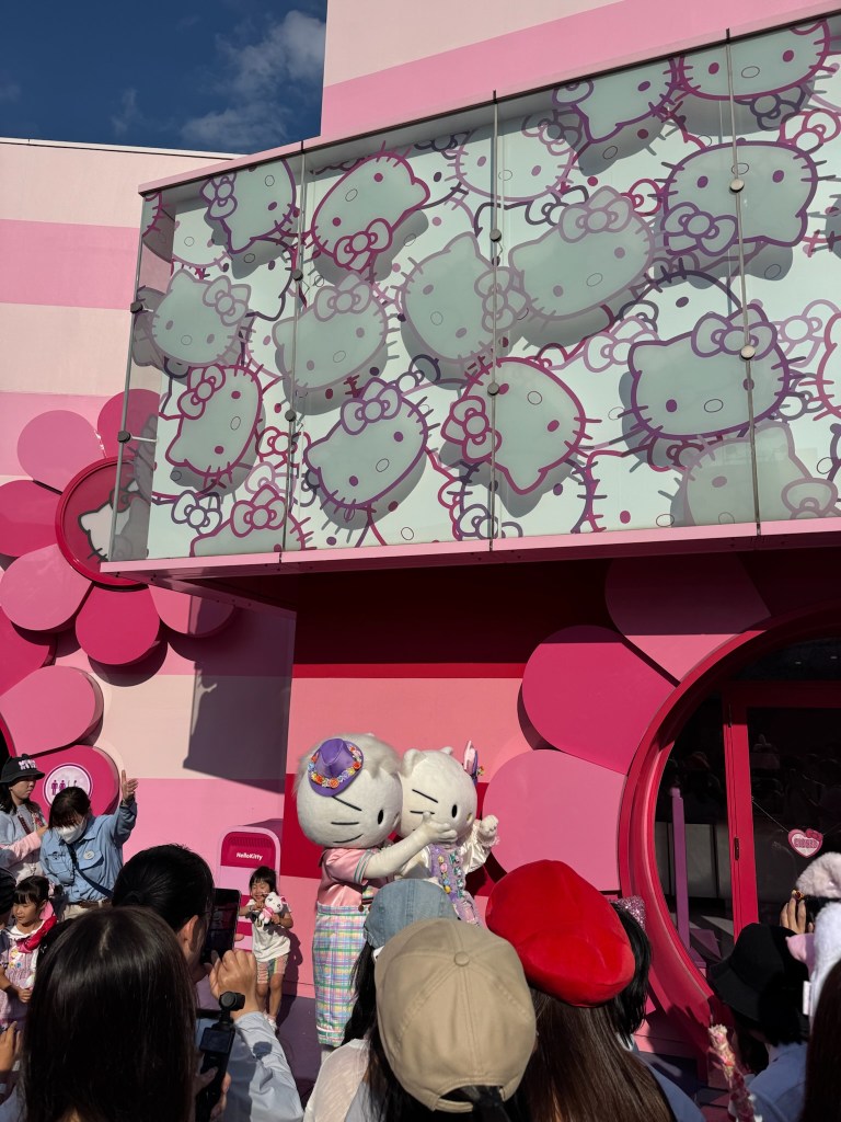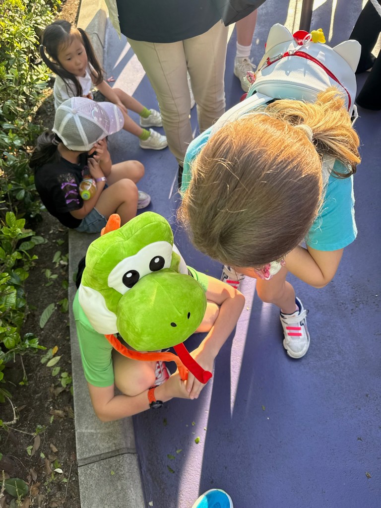 We saw Hello Kitty again—but once again, people pushed ahead. We ended up exploring the rest of the kid area, but the rides were mostly babyish. So we waited for the boys…who were way longer than expected due to a ride delay. We did get lucky and a parade came by right in front of us as we were getting a drink from a vending machine.