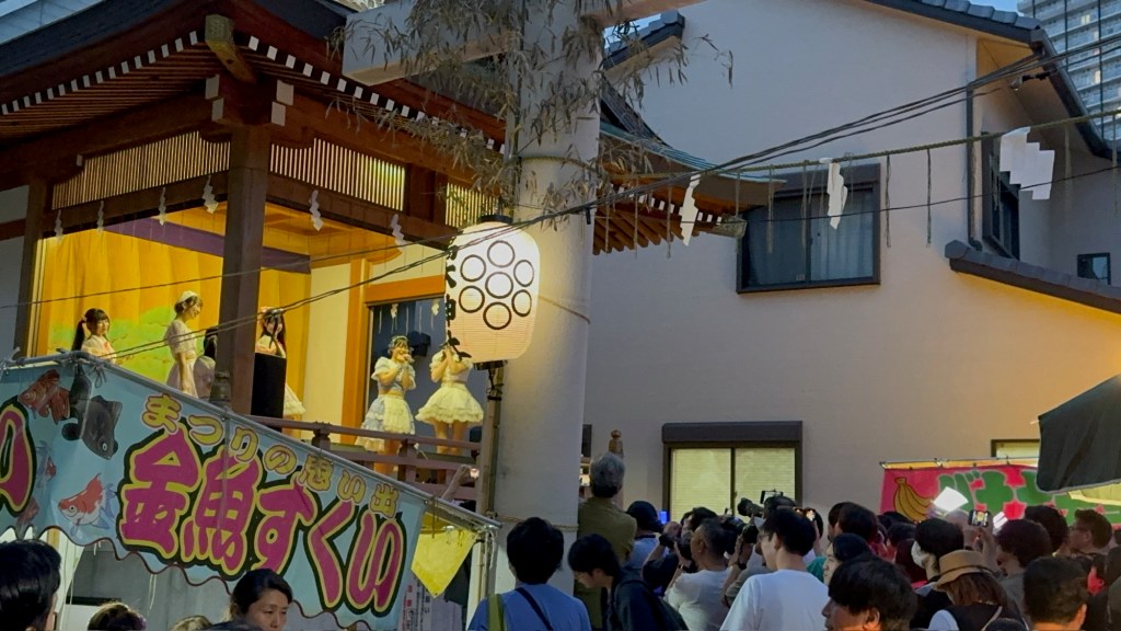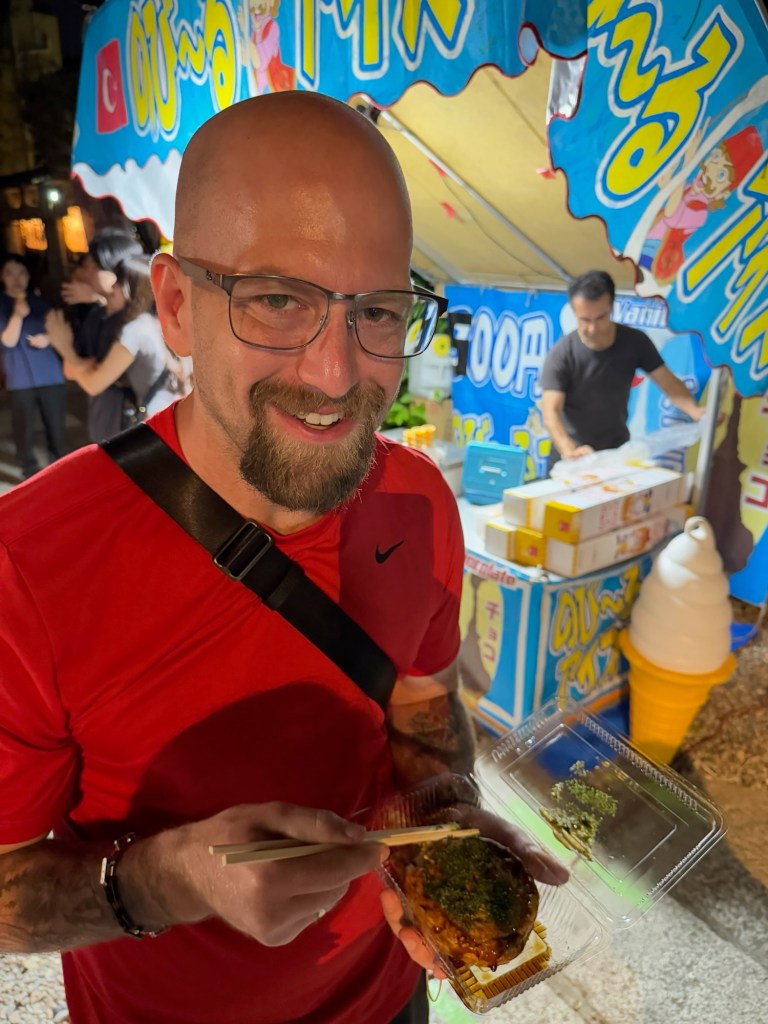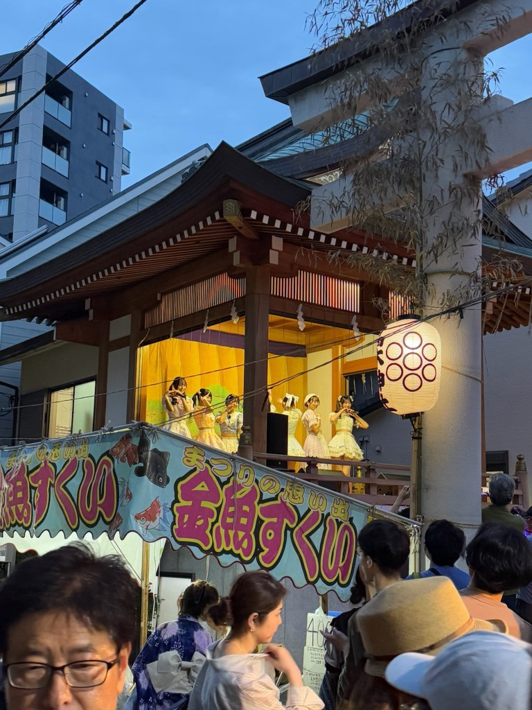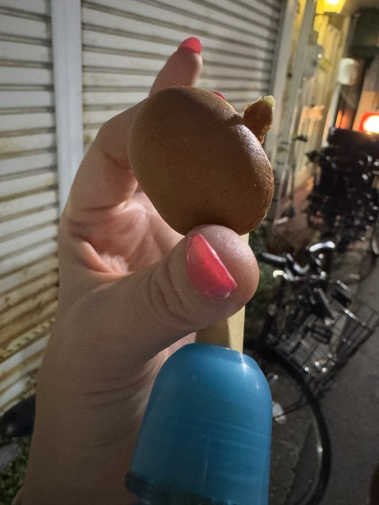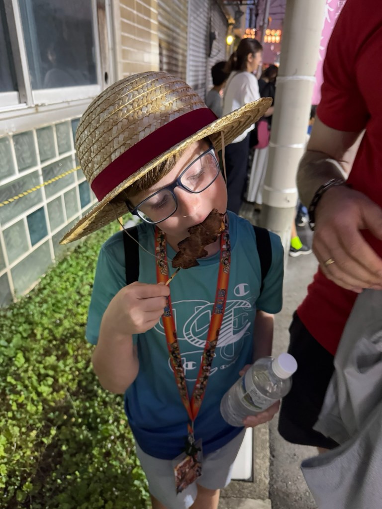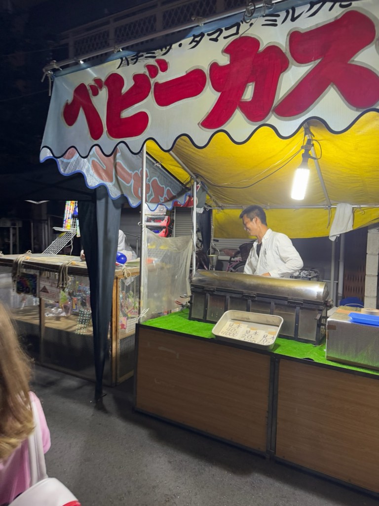 We started making our way home with the plan to stop somewhere along the way. We walked quite a while and hadn’t really seen any options on the route that we took until we came across the same vendor-filled street from earlier, but it was now packed with people and more vendors were set up. The grilled beef skewers had caught our eye before, so we went for it. As we waited in line, we noticed the crowd growing rapidly, and then—BOOM—music blasted, people screamed, and a full-on J-pop concert erupted right in front of us. We looked around and realized we were basically the only non-locals there (less than 10, maybe?) and honestly, it felt like such a special, immersive moment.