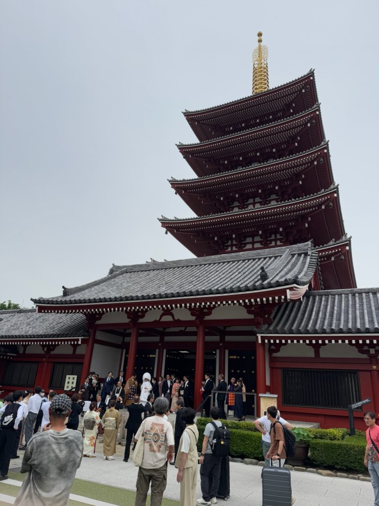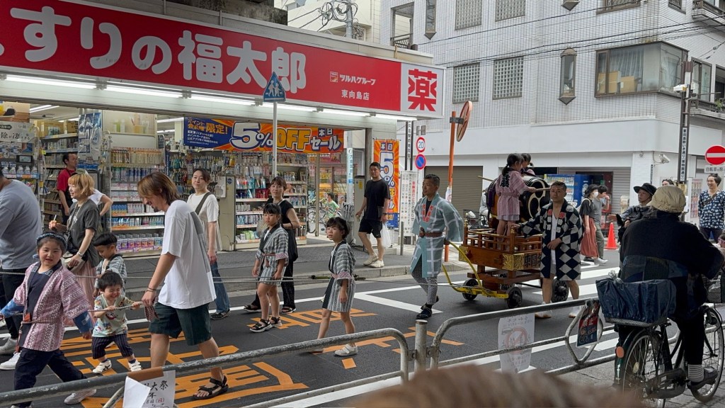 Another glorious Tokyo morning, another chance to sleep in until the solid hour of 8am—travel win! Our first destination of the day: the iconic Senso-ji Temple. But before we could even descend into the train station, something unexpected stopped us in our tracks. Chanting. Drums. A whole mini-parade with what looked like a mobile shrine came rolling by! We couldn’t help but pause and soak it all in—Tokyo just has a way of surprising you like that.