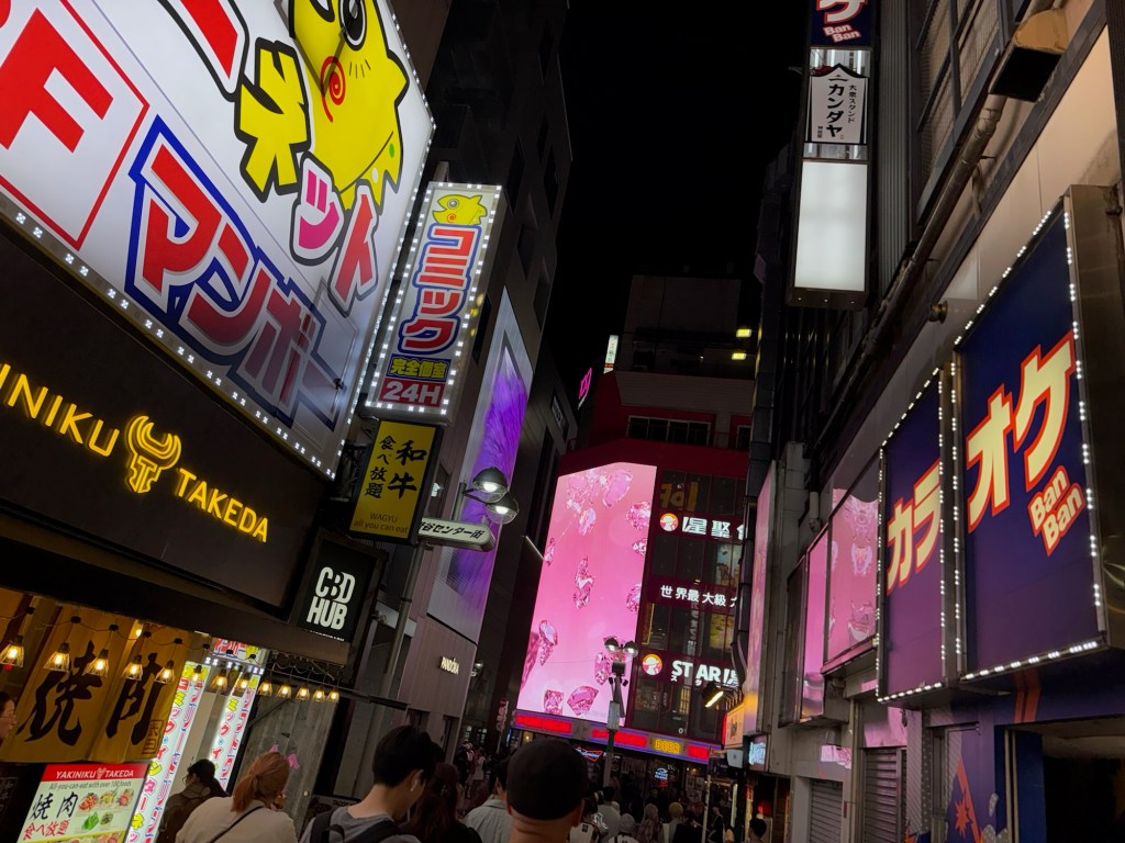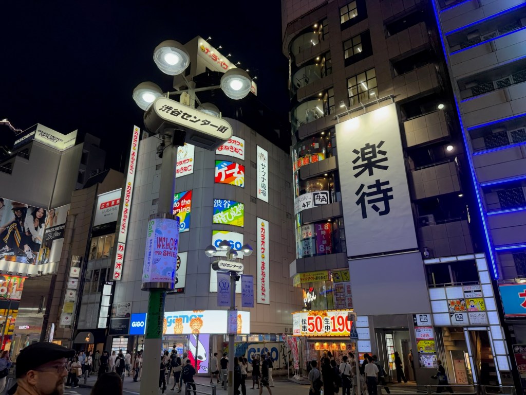 Thanks to Charlie’s determination, we got some solid pics and video from our semi-blocked view. Then we explored the rest of the building before heading out. We peeked into Lululemon (same prices as the US and no tax-free perks, so we bailed), and stumbled into a different building that held the Shibuya One Piece store. We took the scenic stair route down—5 or 6 flights lined with awesome murals.