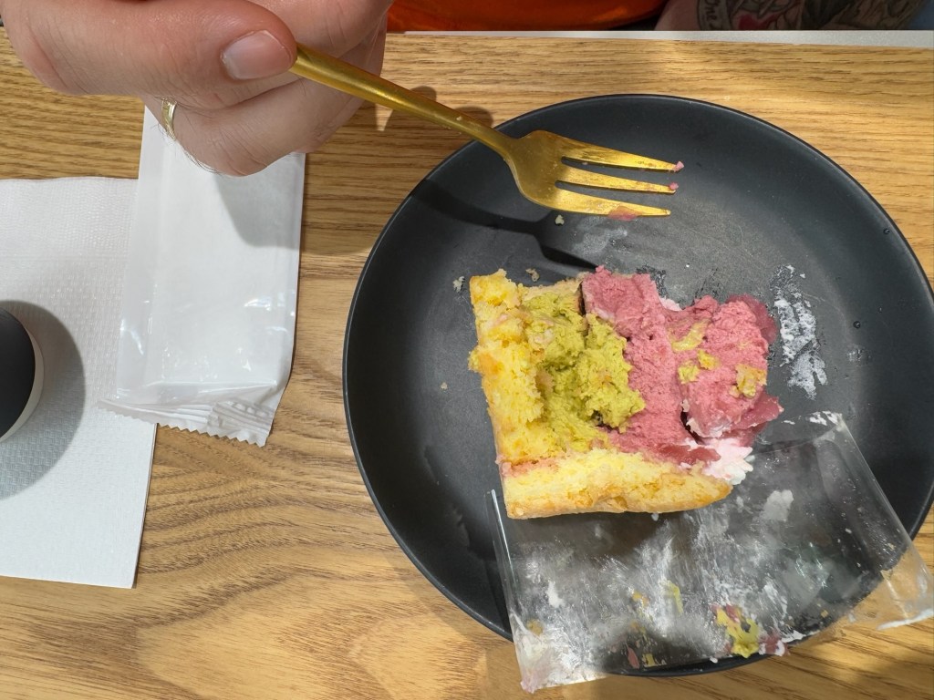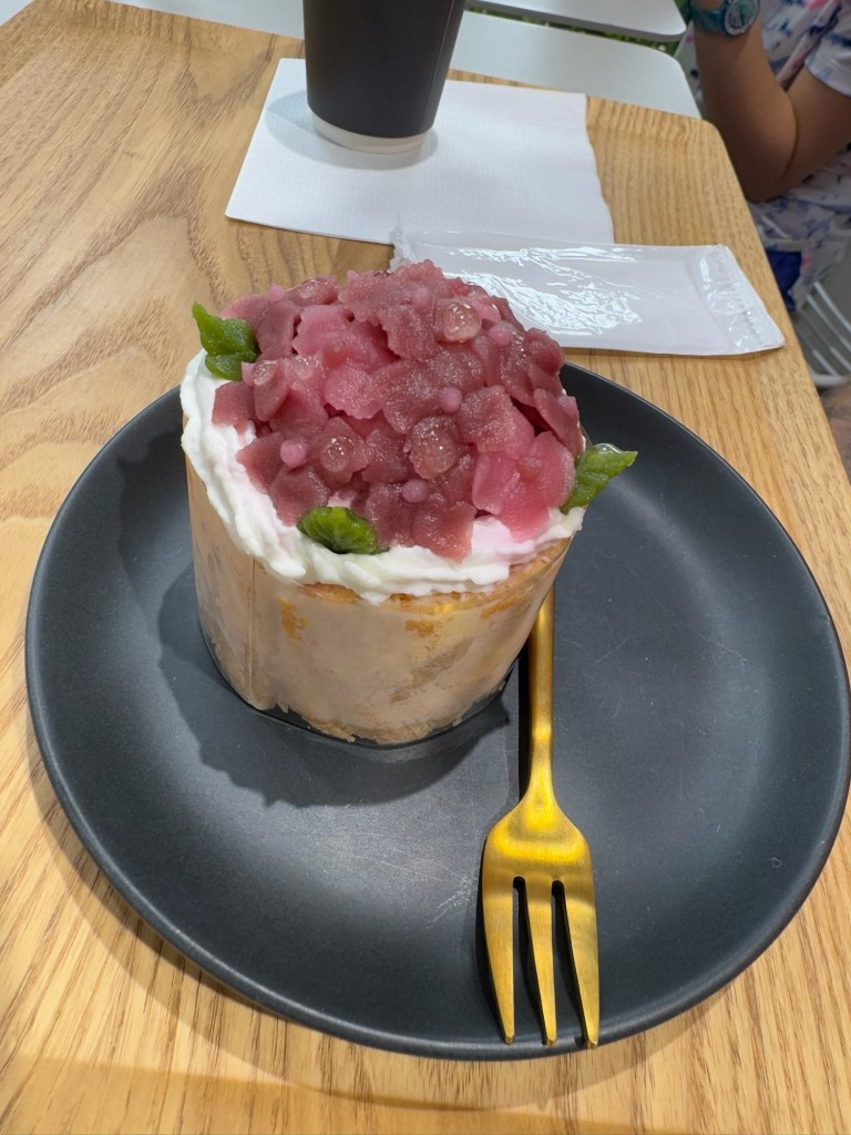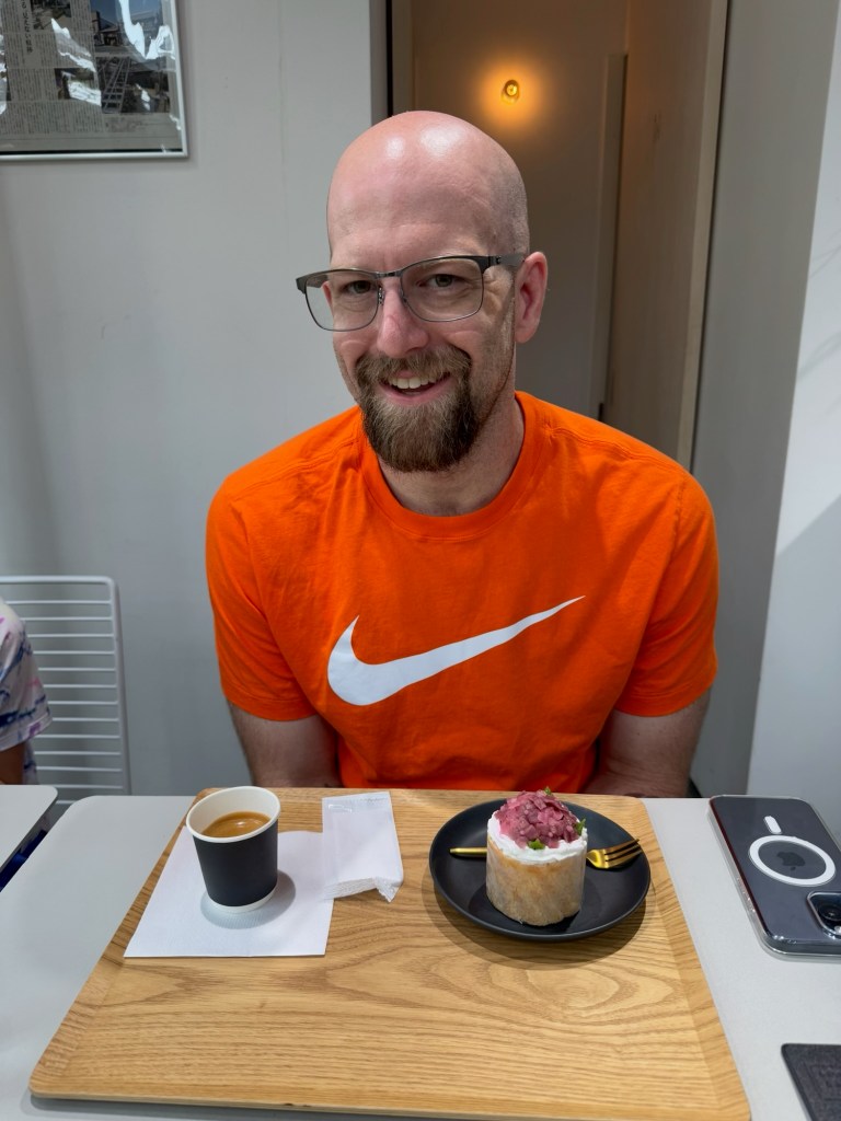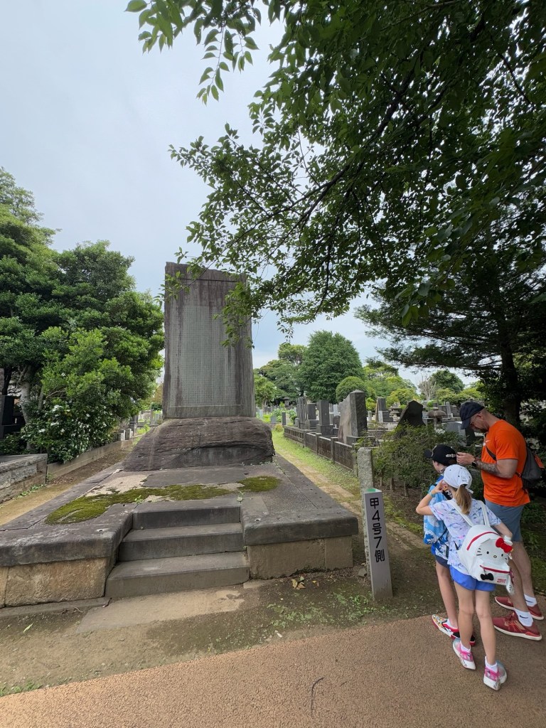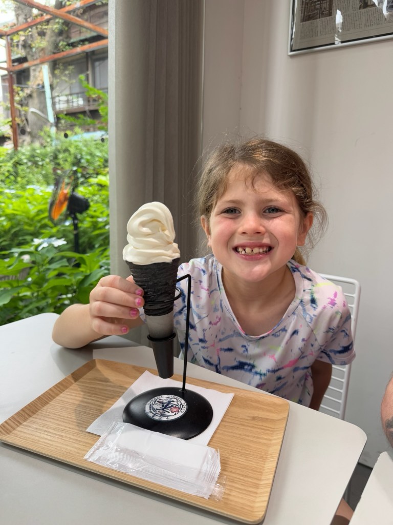 Yanaka greeted us with shrines, temples, and peaceful graveyards. As we wandered, we stumbled on a cozy coffee shop that also happened to serve ice cream—a no-brainer stop since Carlynn can always sniff out ice cream. She got a cone, I had a coffee float, and Tom treated himself to an espresso and a gorgeous cherry-pistachio cake.